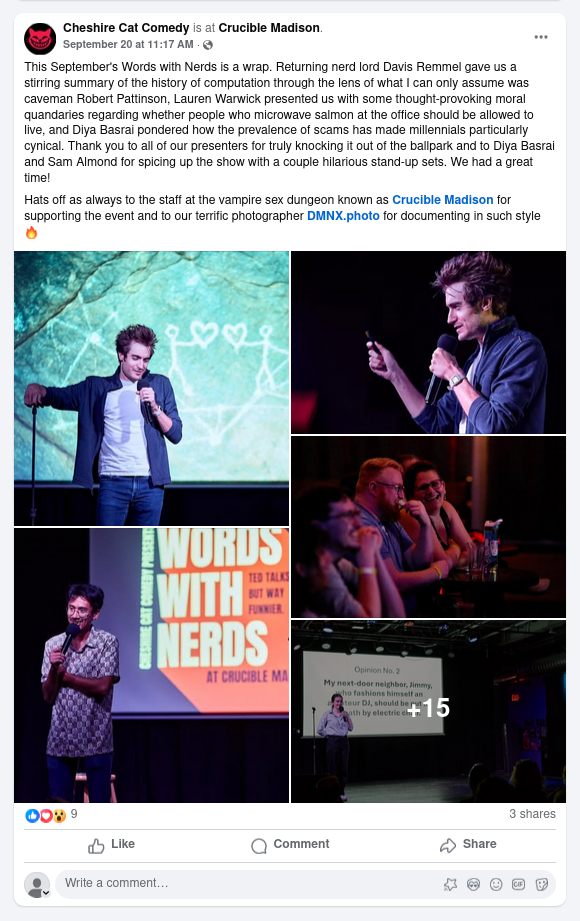Facebook, 2025-09-20 - Referring to my 2024-07-18 talk about Gemini 4, Words with Nerds producer Cheshire Cat Comedy wrote: